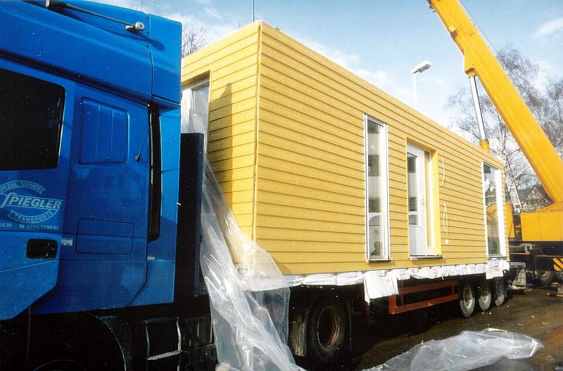 Wenn mehr als die üblichen 45% Vorfertigung erreicht werde soll - muss das Gebäude in gerade noch transportablen Bauwerksmodulen realisiert werden. Die Abmessungen betragen bis 6,50 m Breite, 15,00 m Länge und bis zu 3,70 m Höhe. Also 80 qm Wohnfläche am Stück!